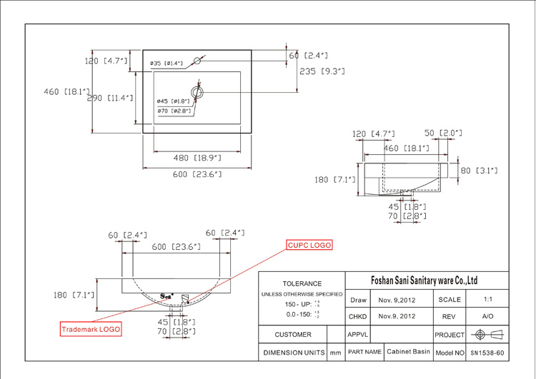 •Bathroom cabinet sink with CUPC certification
