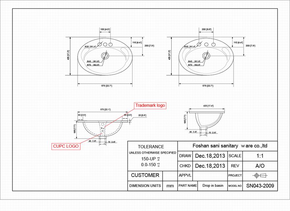 •Drop in sink with CUPC certification